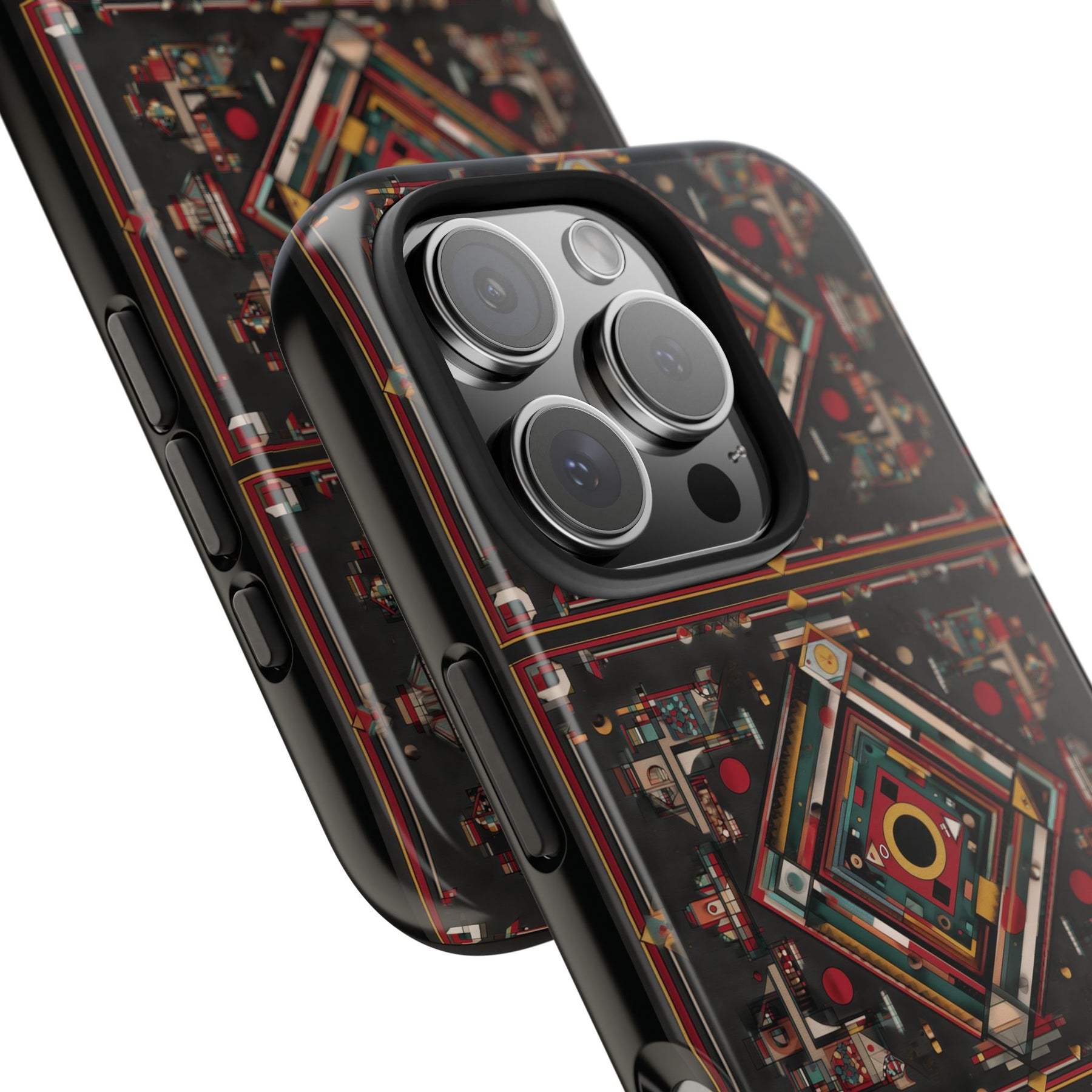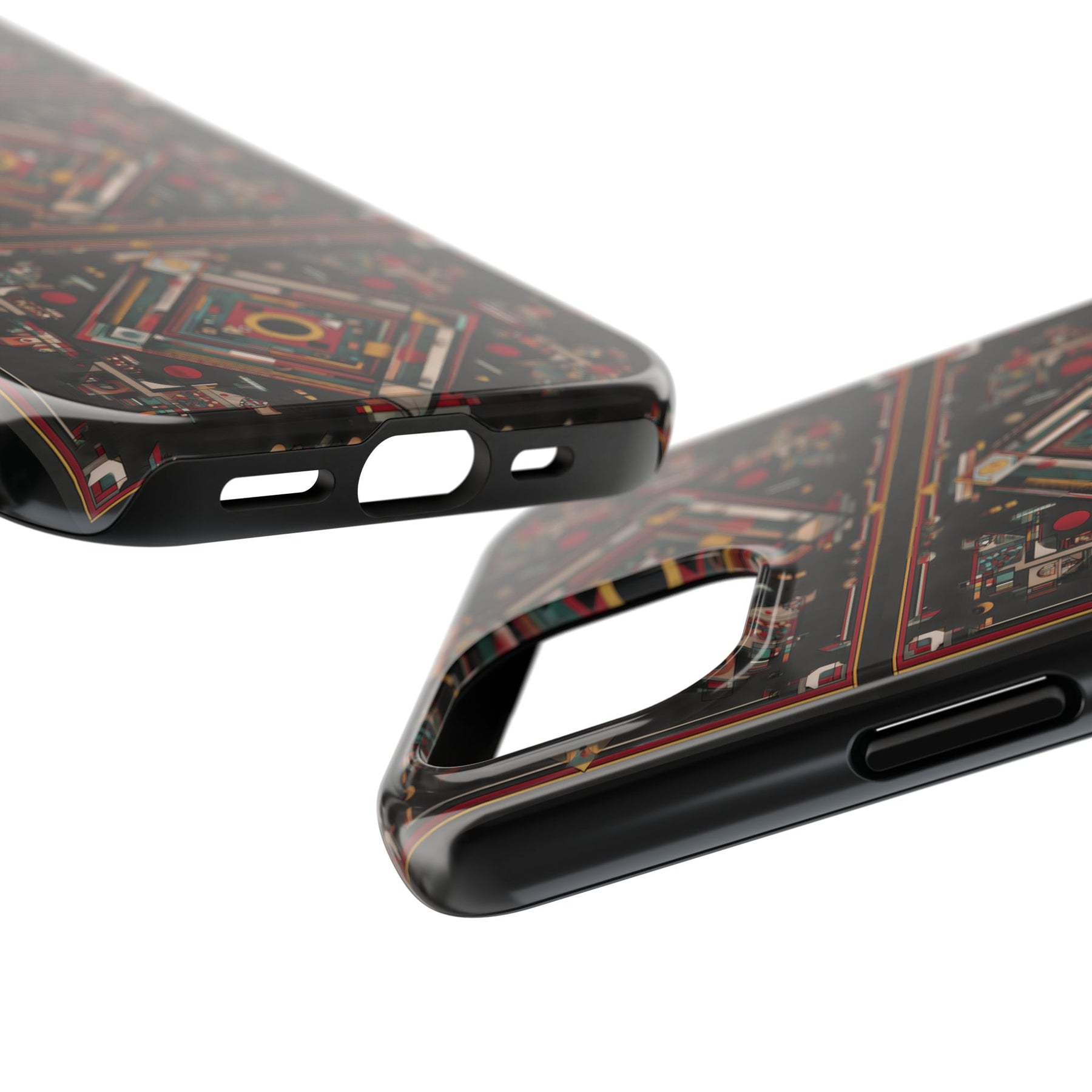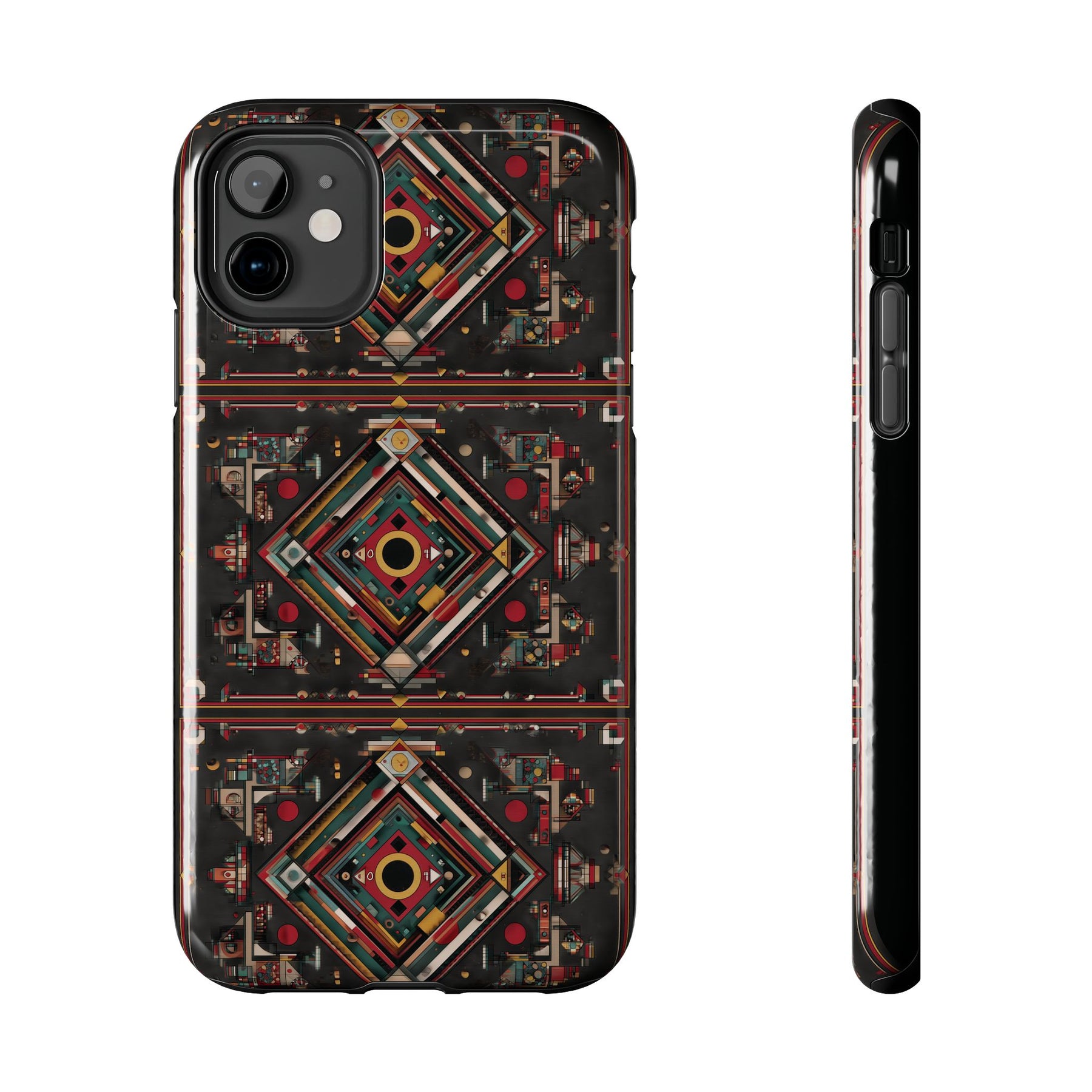 Protect your phone in style with our Ajrak Tough Phone Case, featuring a bold new design that blends tradition with modern flair. Inspired by the rich heritage of Ajrak, this pattern showcases striking geometric shapes and vibrant, earthy tones. Crafted from durable Lexan plastic with a glossy finish, it offers reliable impact protection while making a bold cultural statement—perfect for everyday use or as a meaningful gift.