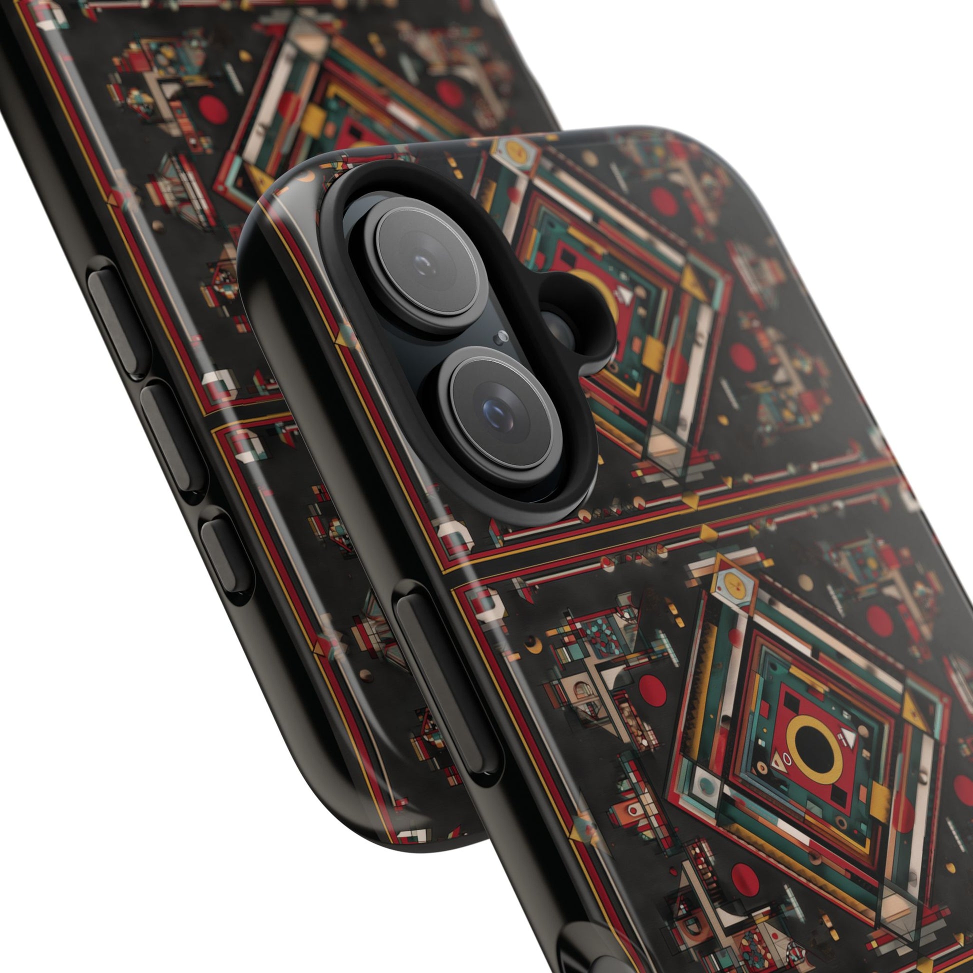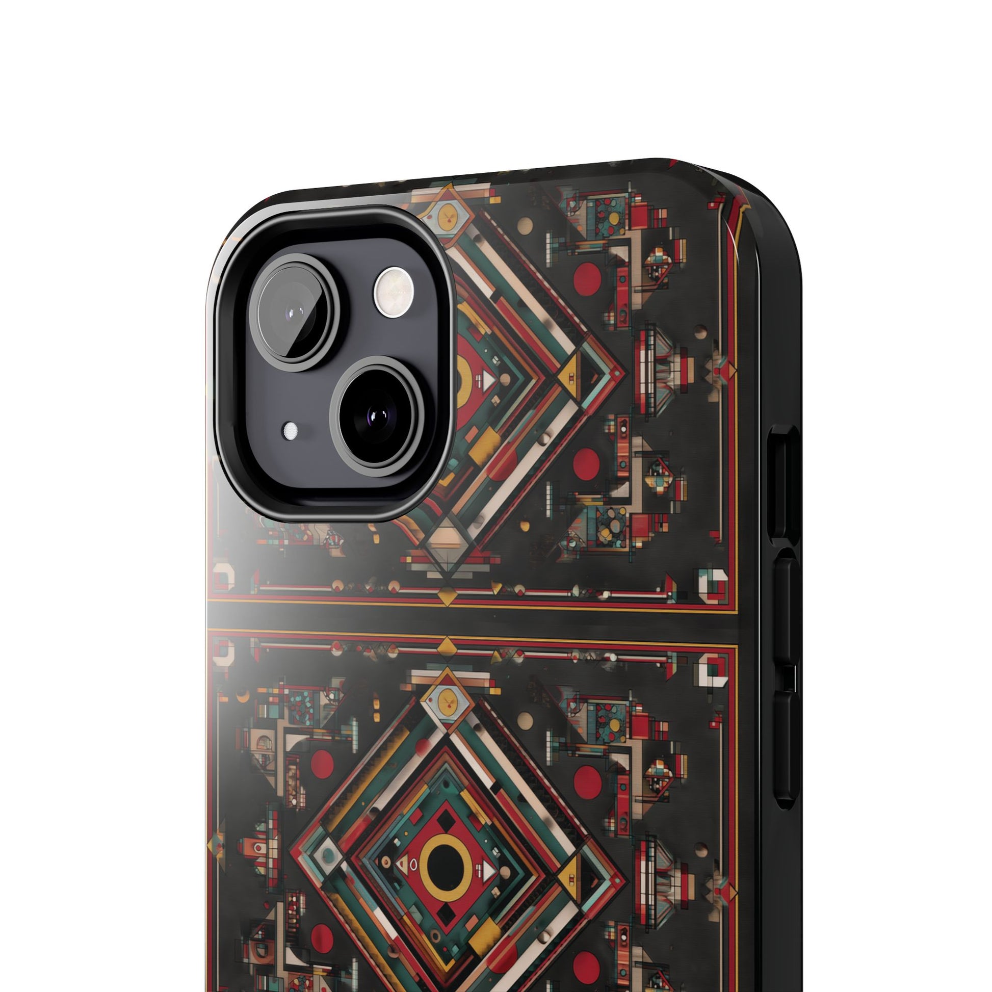 Protect your phone in style with our Ajrak Tough Phone Case, featuring a bold new design that blends tradition with modern flair. Inspired by the rich heritage of Ajrak, this pattern showcases striking geometric shapes and vibrant, earthy tones. Crafted from durable Lexan plastic with a glossy finish, it offers reliable impact protection while making a bold cultural statement—perfect for everyday use or as a meaningful gift.