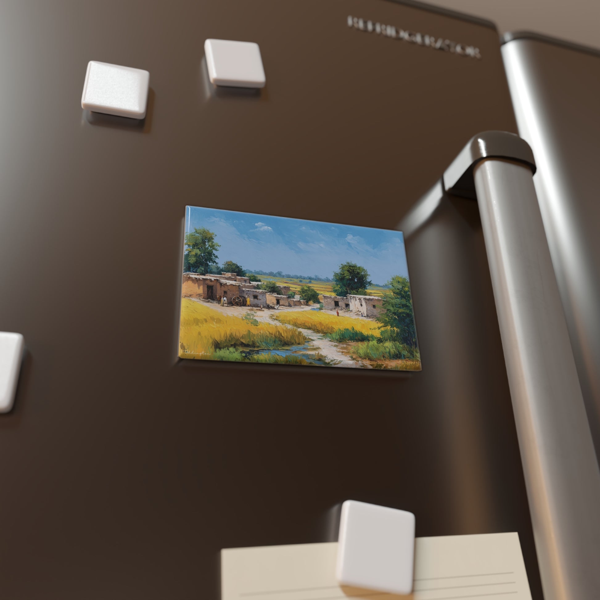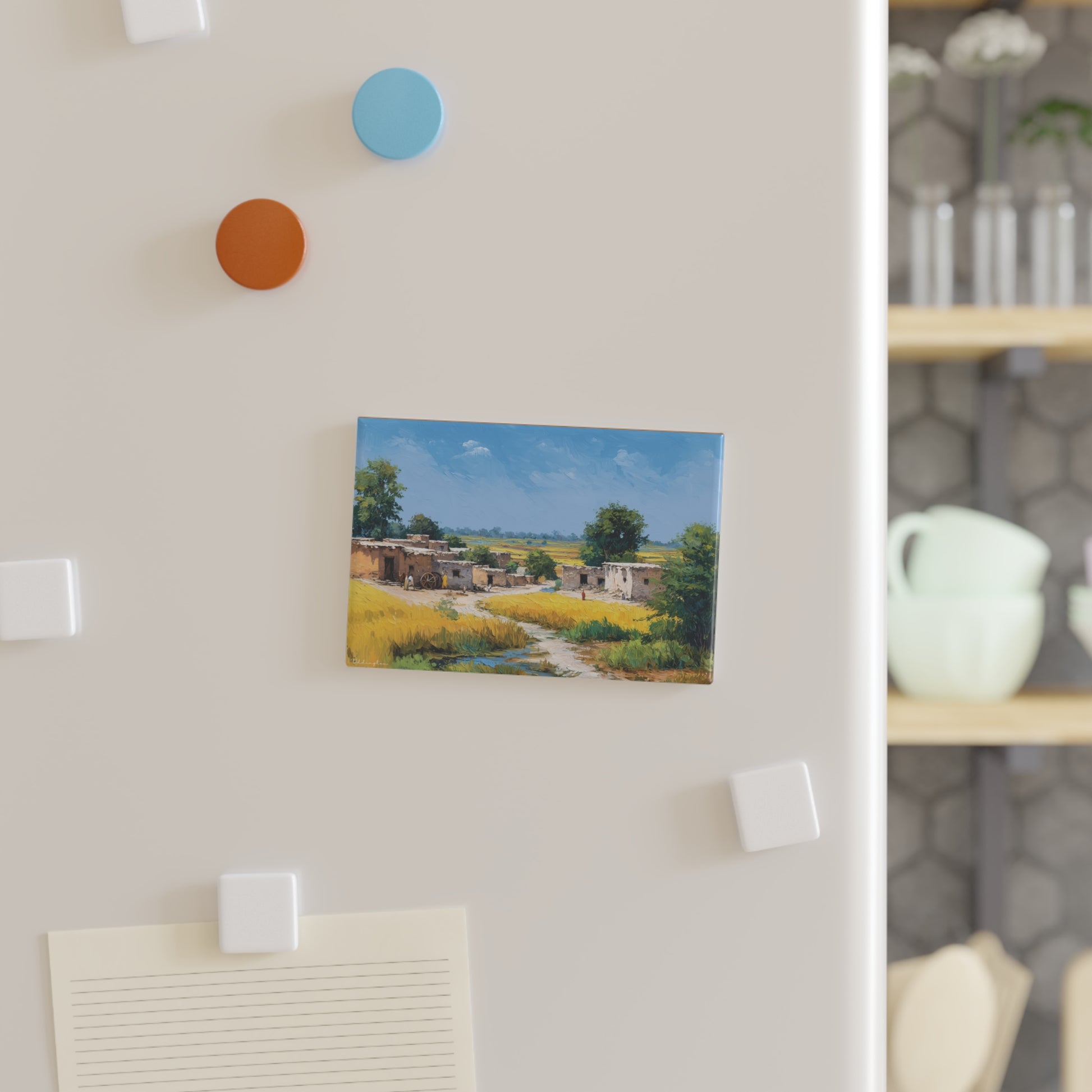 Bring the beauty of Punjab’s countryside into your space with these rectangular magnets, featuring golden wheat fields, blooming mustard flowers, winding rivers, and vibrant village life. Perfect for holding notes, photos, or artwork on your fridge or office board, these durable, high-quality magnets add a touch of rustic charm while celebrating the region’s rich heritage. Ideal as gifts for birthdays, holidays, or housewarmings, they bring warmth and personality to any home or workspace.