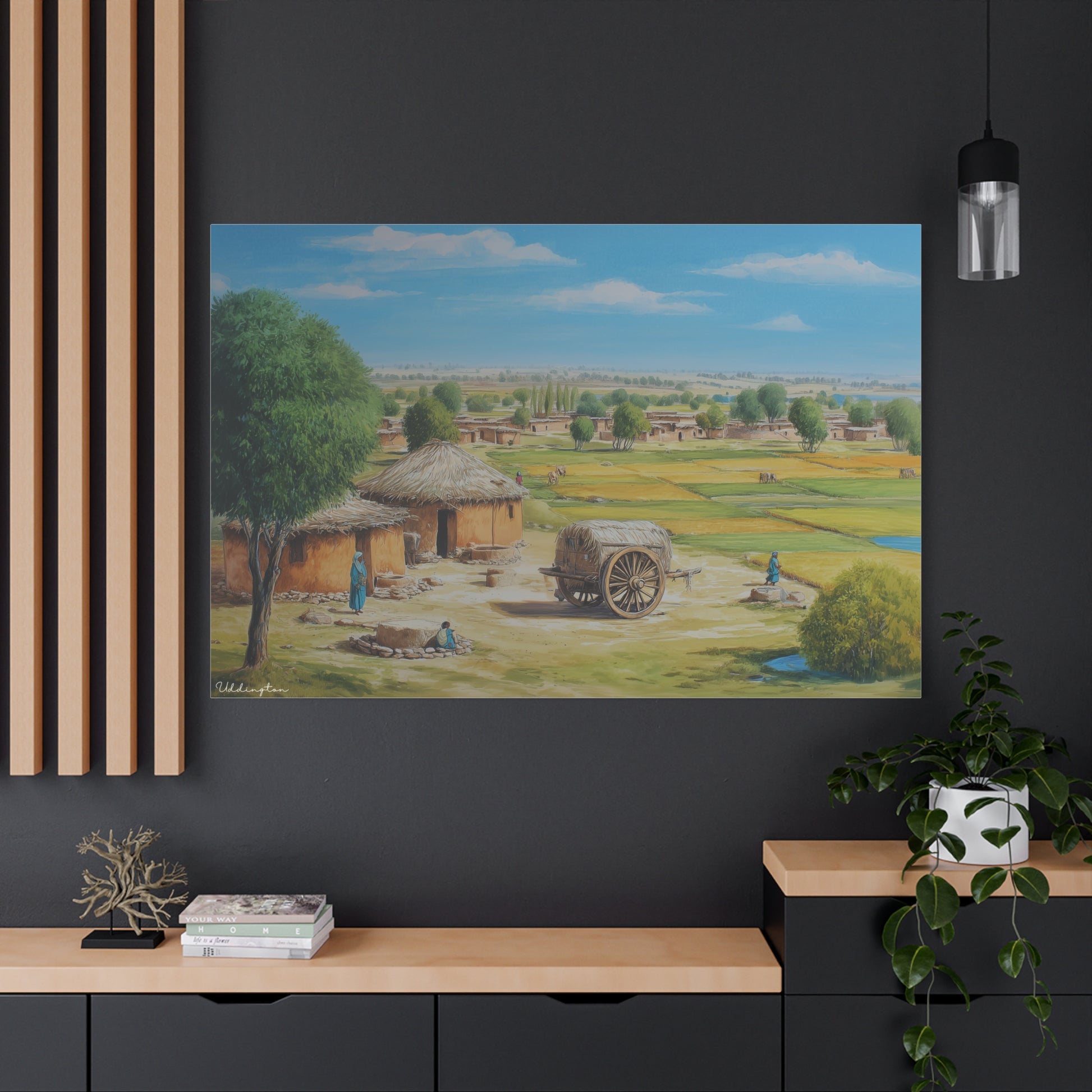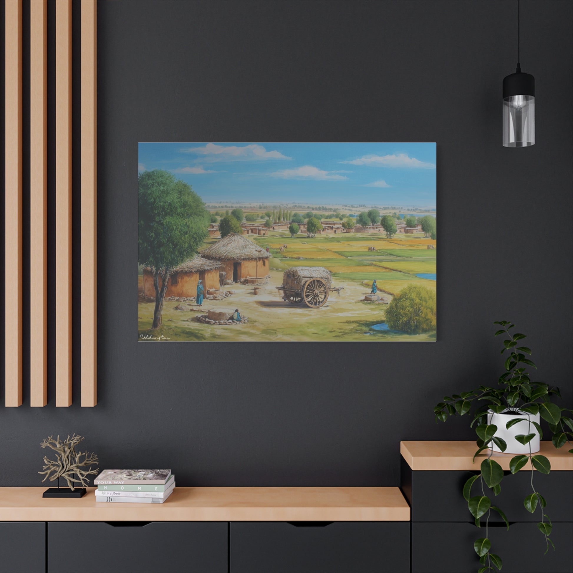 Transform your space with this Matte Canvas, featuring a vivid landscape of Punjab’s plains with golden wheat fields, blooming mustard flowers, winding rivers, and lively villages. Printed in high-quality detail, it adds warmth and cultural charm to any room. Perfect for home decor lovers or as a gift for weddings, anniversaries, housewarmings, or holidays, this canvas brings the serene beauty of Punjab into your home.
