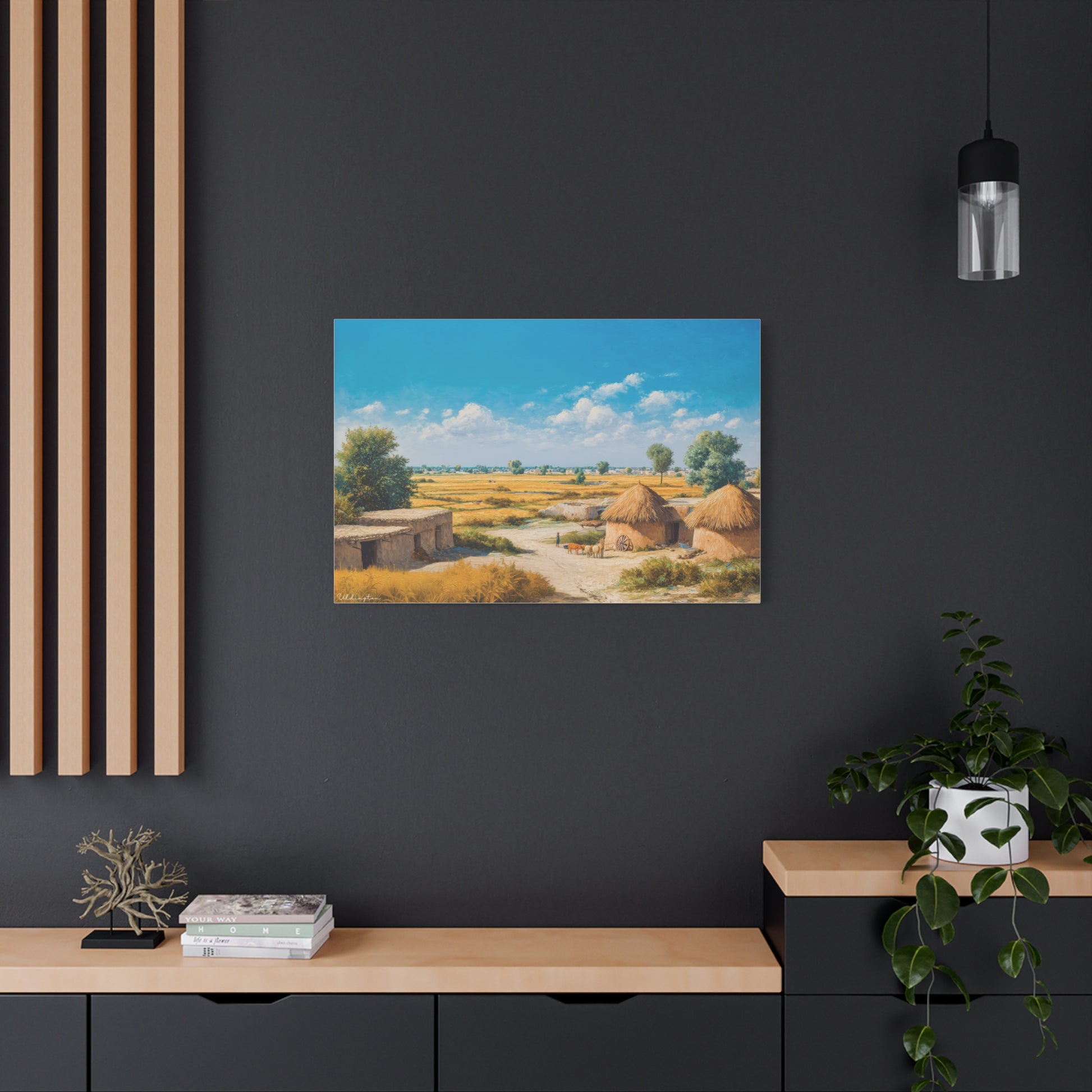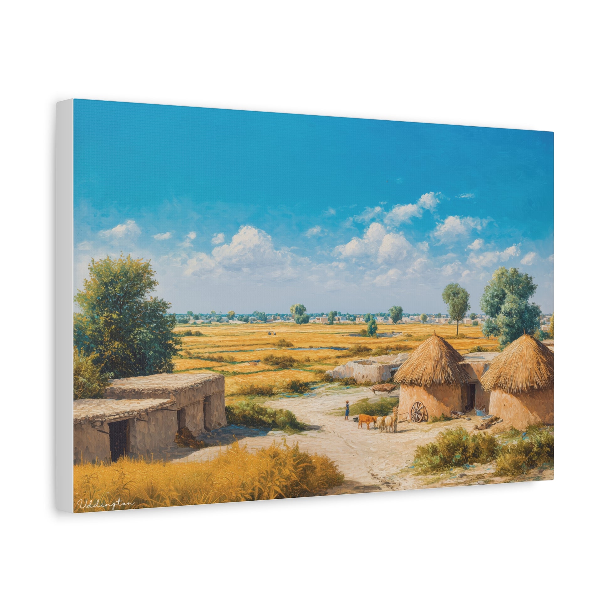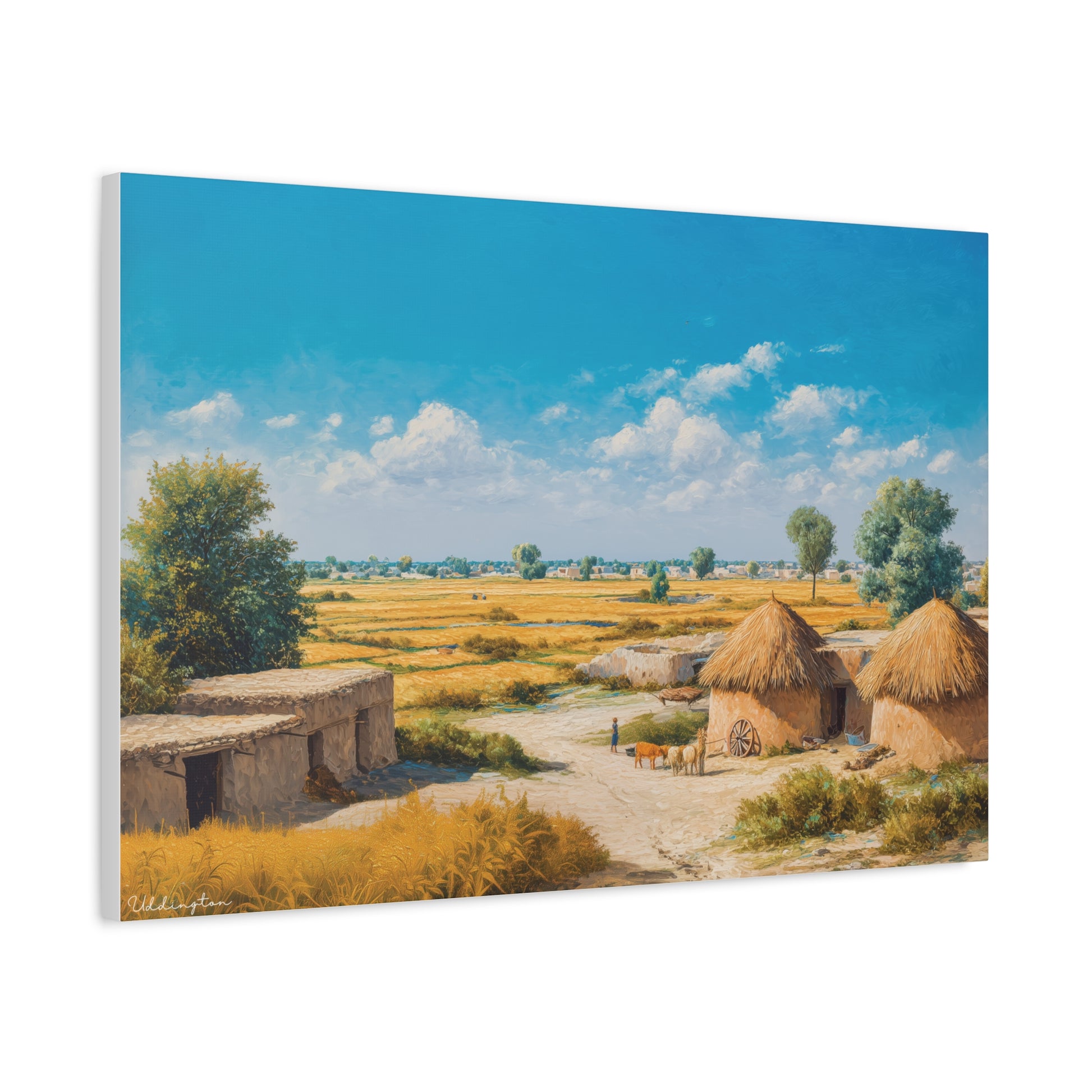 Transform your space with this Matte Canvas, featuring a vivid landscape of Punjab’s plains with golden wheat fields, blooming mustard flowers, winding rivers, and lively villages. Printed in high-quality detail, it adds warmth and cultural charm to any room. Perfect for home decor lovers or as a gift for weddings, anniversaries, housewarmings, or holidays, this canvas brings the serene beauty of Punjab into your home.